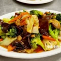 Assorted vegetables stir-fried with crispy noodles, providing a light and...